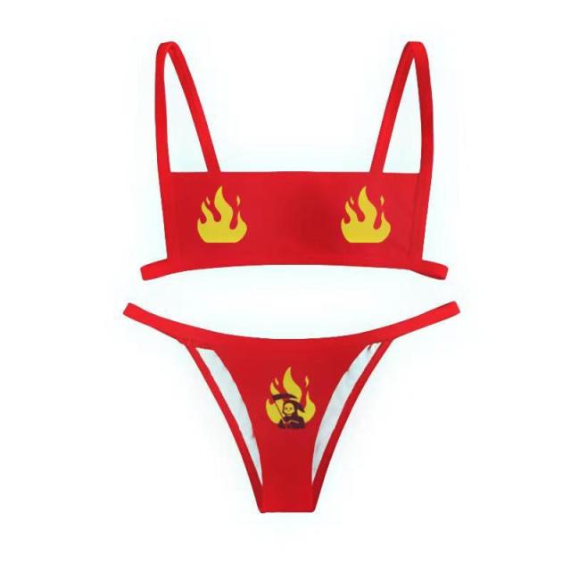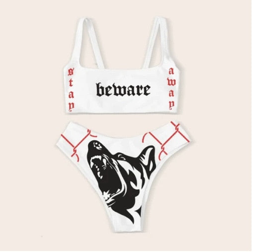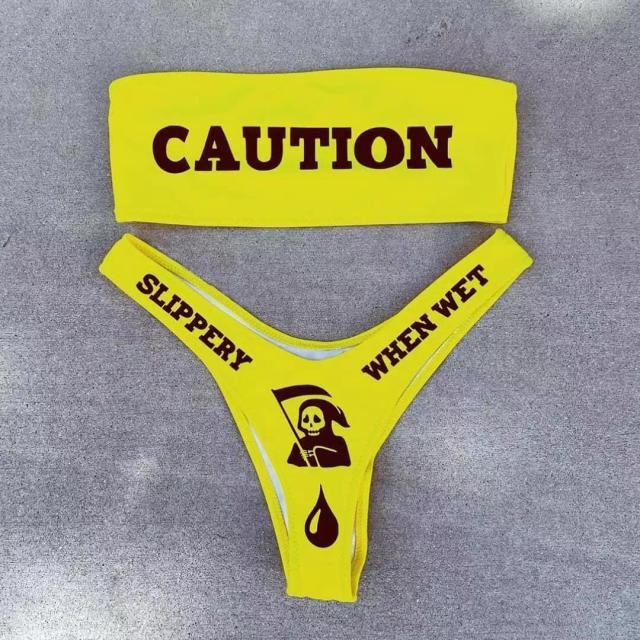 Letter Printed Two-Piece Bikini with Polyester Spandex Material