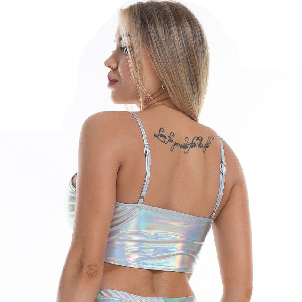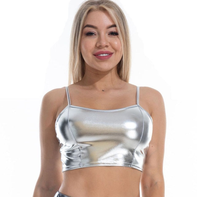 Metallic Color Cropped Camisole Top with Polyester Material