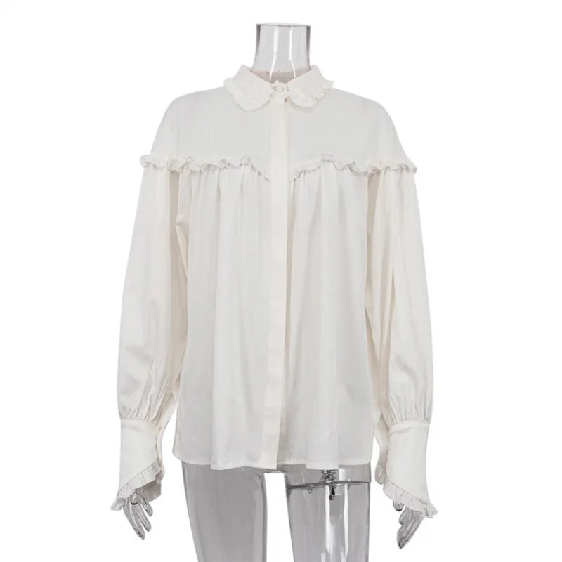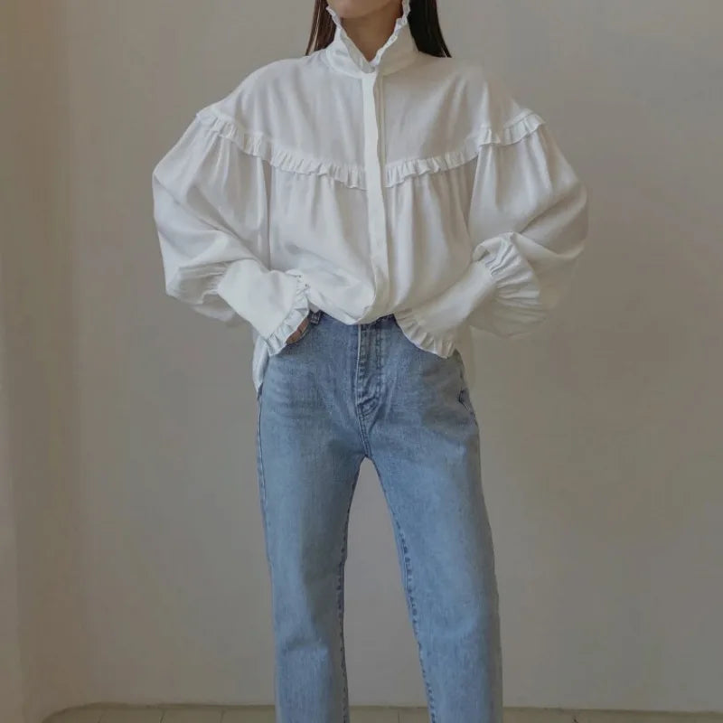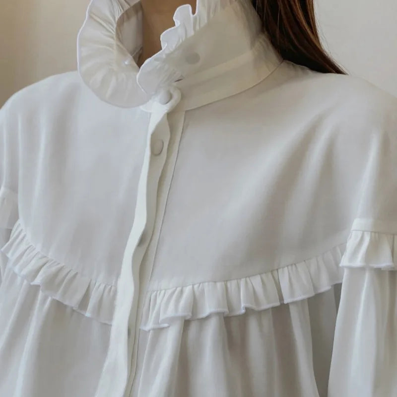 This solid shirt made of polyester and spandex will make heads turn with its trendy ruffle design. Look and feel confident while wearing this shirt, perfect for any occasion. Keep your heart in check while looking stylish and comfortable!