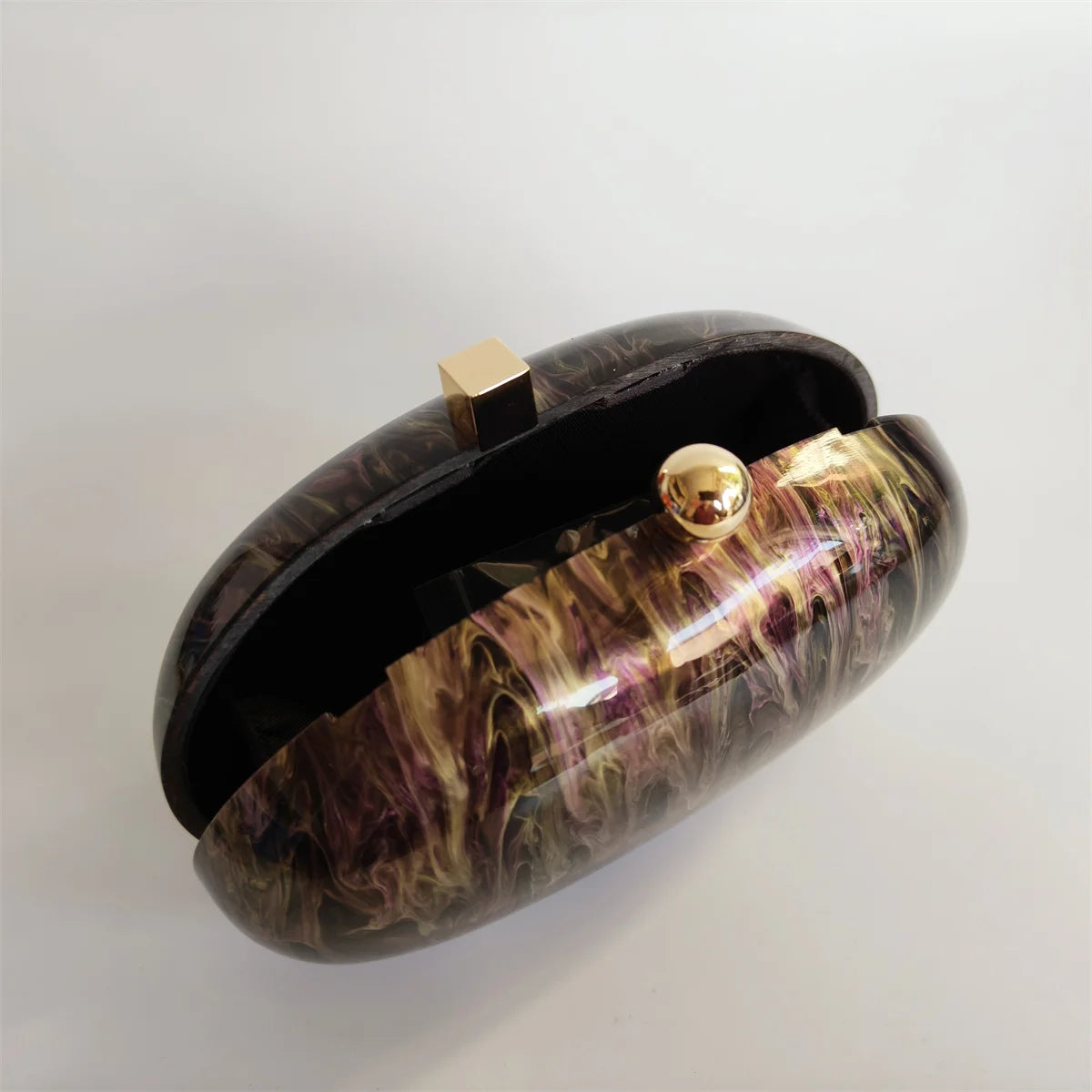 Experience luxury and elegance with our Written In Any Verse Clutch Bag. The circular shape adds a unique touch, while the decorative chains and stone pattern elevate the design. Made with premium quality acrylic and lined with soft cotton, this bag combines style and comfort effortlessly.