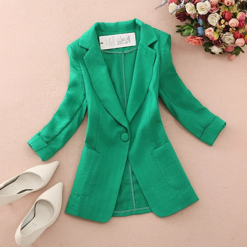 This blazer is the perfect way to stay warm and look great. Its cotton, polyester, and linen blend makes it durable and comfortable. Solid color and classic design make it perfect for any occasion.
