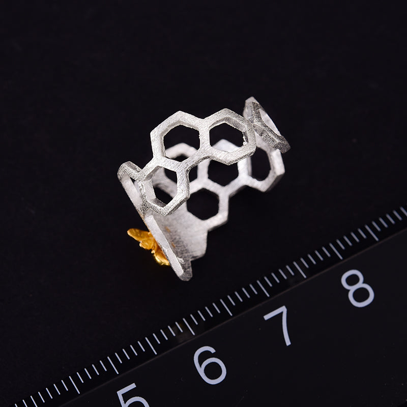 925 Sterling Silver Ring with Unique Honeycomb and Bee Design