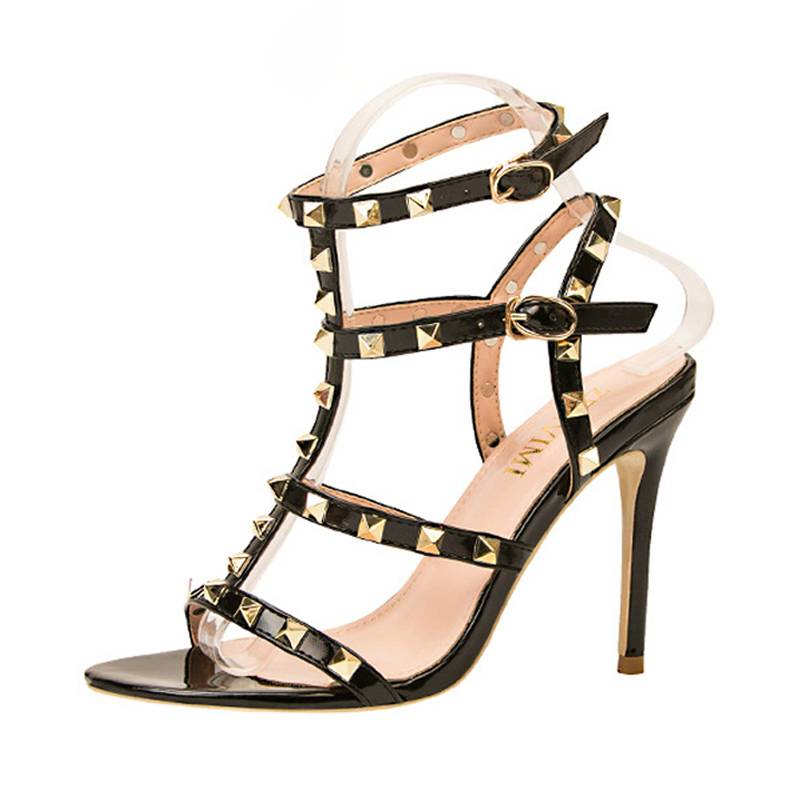 PU Leather Fully Rivet Heeled Sandal
