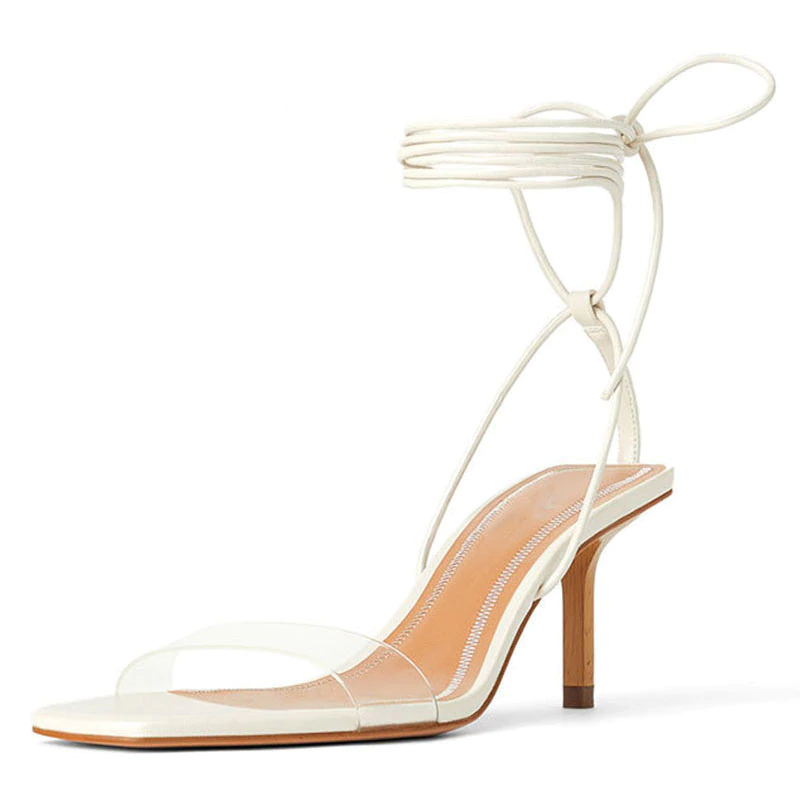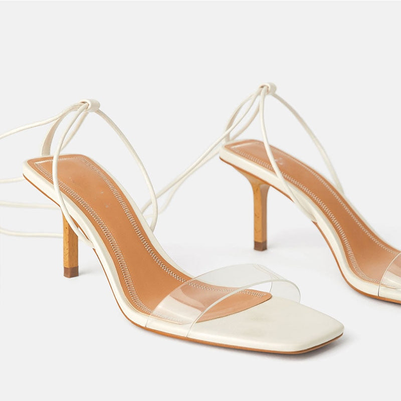 Synthetic Cross Tied Thin Heeled Sandal