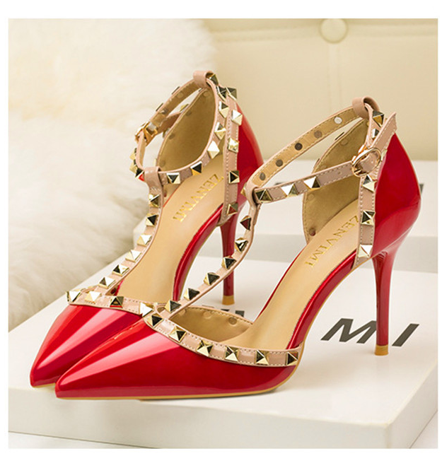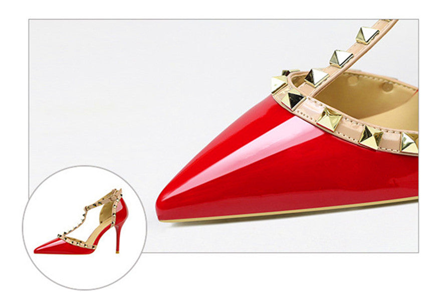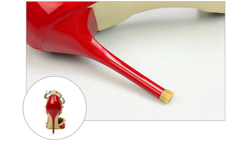 Rivet Details Solid Color PU Leather High Heel