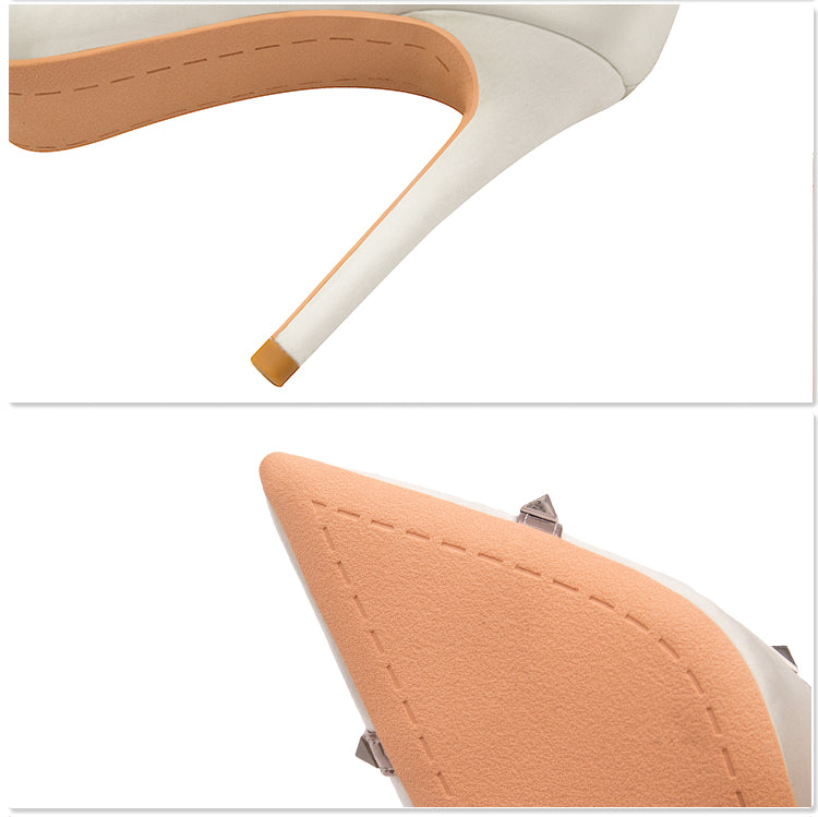 Fashion Rivet Satin Lady's Heel Pointed Toe Thin High Heel Shoes