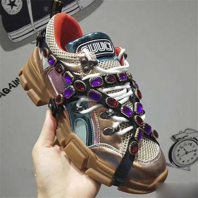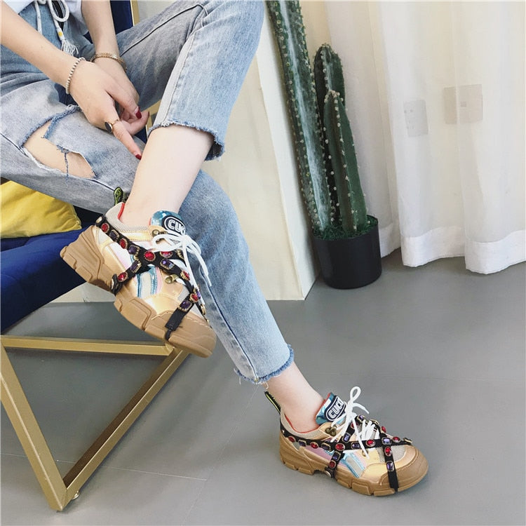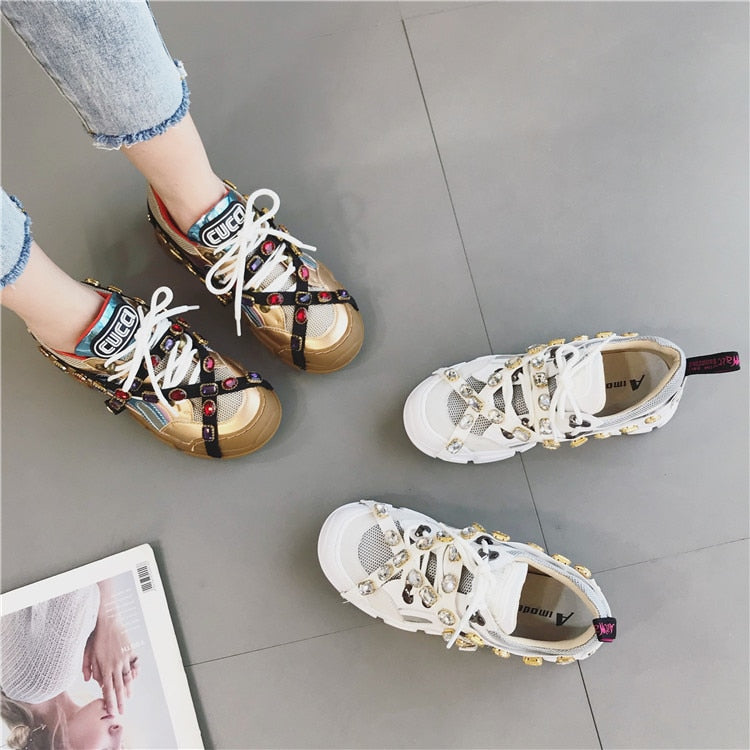 Rhinestone Decorated Microfiber Lace-Up Sneaker