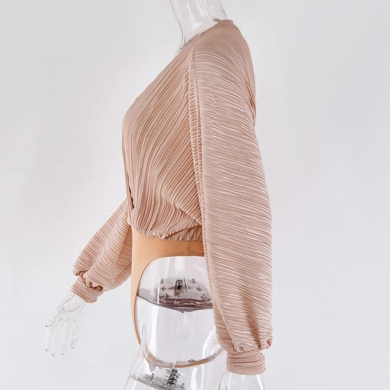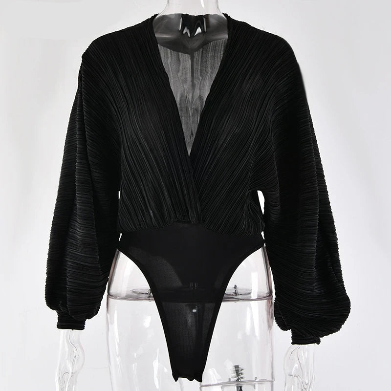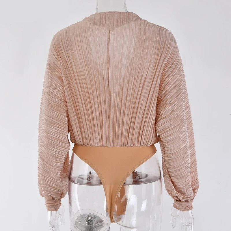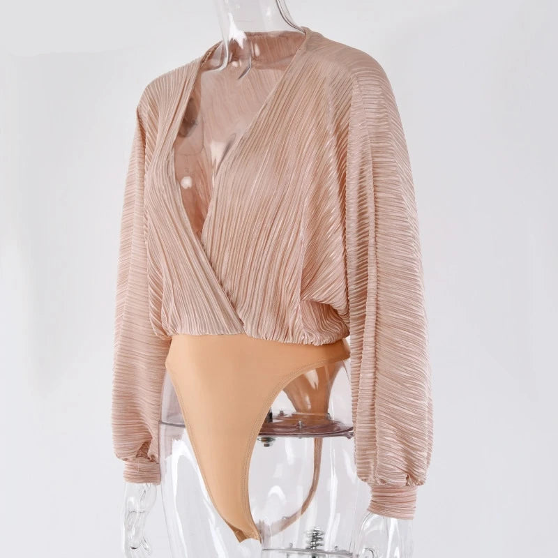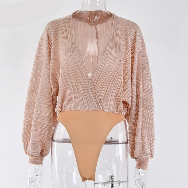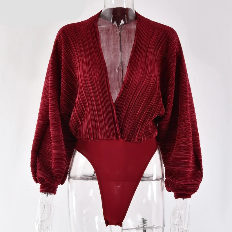 Spandex Broadcloth Fabric Solid Color V-Neck Long Sleeve Bodysuit