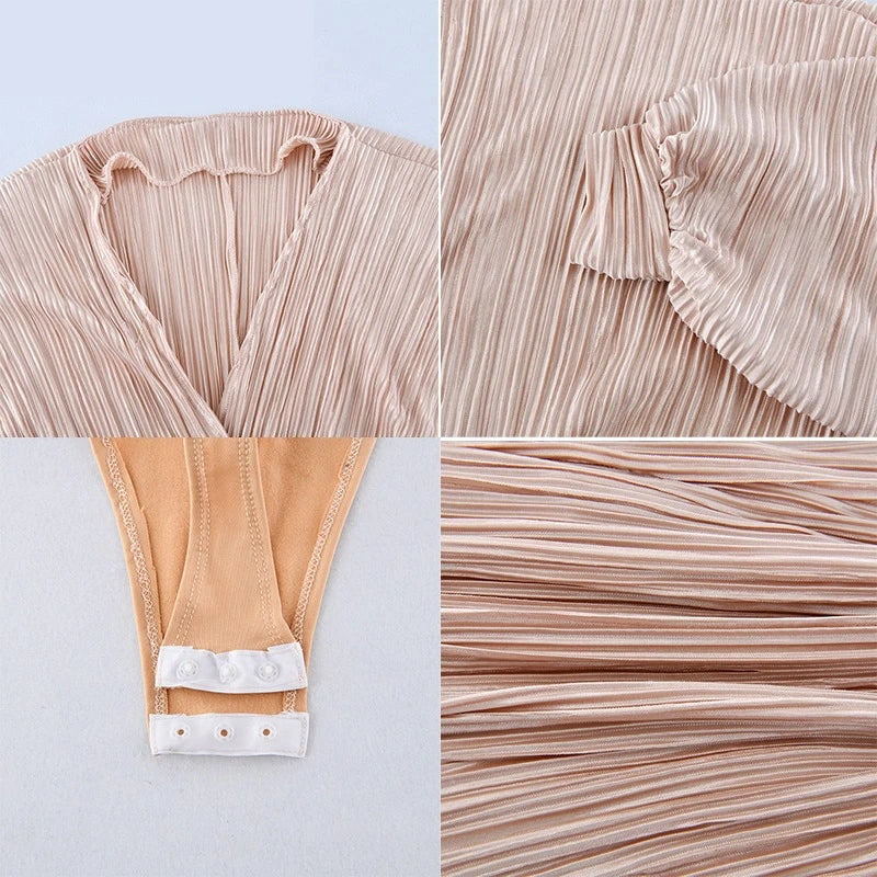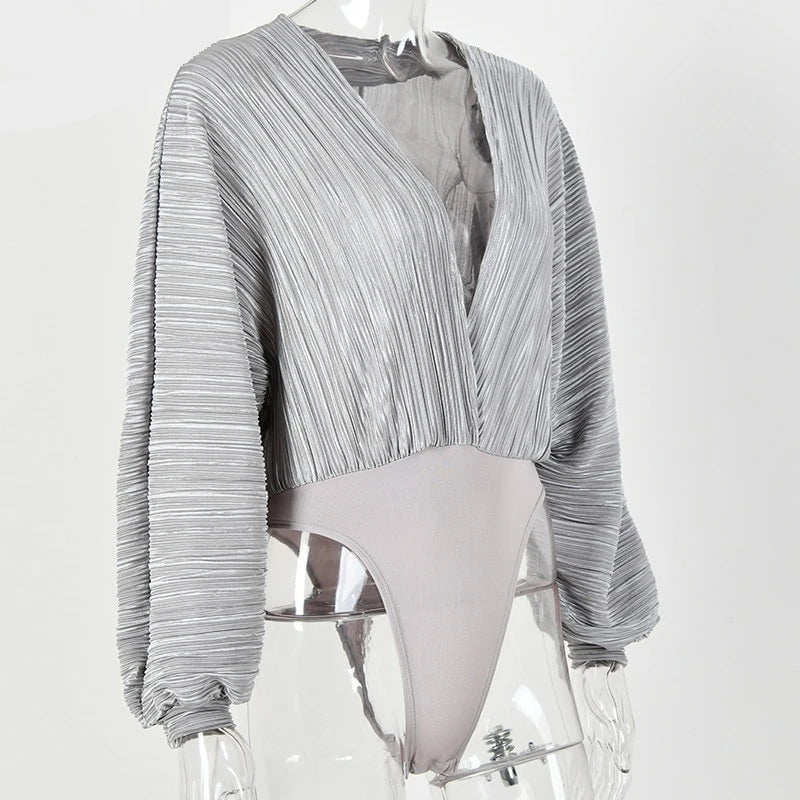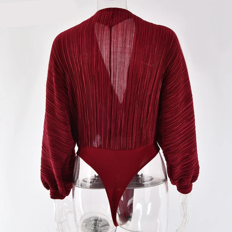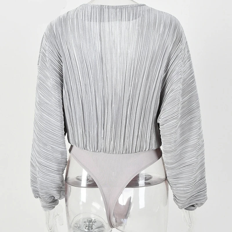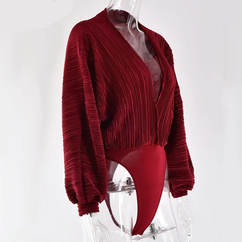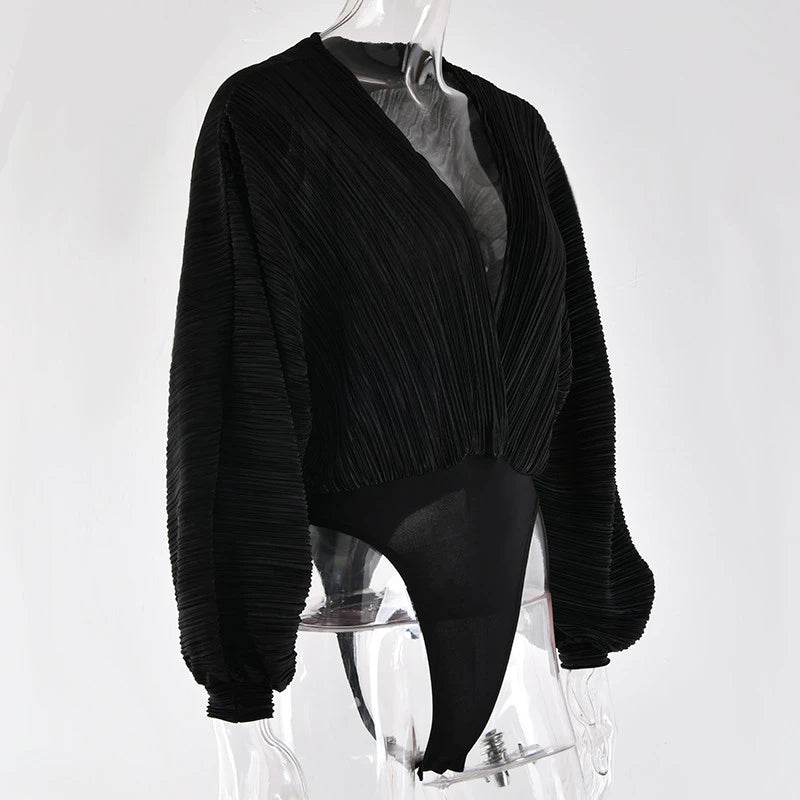 Spandex Broadcloth Fabric Solid Color V-Neck Long Sleeve Bodysuit