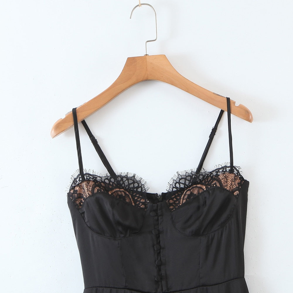Introducing the perfect addition to your wardrobe - our stunning mini dress! This dress is designed with a natural waistline, a camisole style, and a sexy & club vibe that's sure to turn heads. Crafted from high-quality synthetic fibers and polyester, this dress is soft and comfortable to wear. It features a solid pattern and is adorned with delicate lace decoration, adding a touch of elegance and sophistication to your look. It's the perfect dress for a night out on the town, a special occasion, or even a casual day out.
