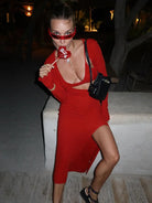 Make a statement in striking red with this fearless midi dress that refuses to blend in. Built from a responsive spandex-polyester blend, it hugs your curves while moving with you for unrestricted confidence. The solid design strips away distractions, letting your presence do all the talking.