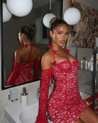 This audacious mini dress combines delicate lace with a mesmerizing floral print on premium polyester fabric. The daring cut and fitted silhouette create an unforgettable look that radiates confidence and sophistication. Perfect for those moments when you're ready to make a bold statement and own the room. Dress it up for a night out or keep it casual—either way, you'll turn heads.