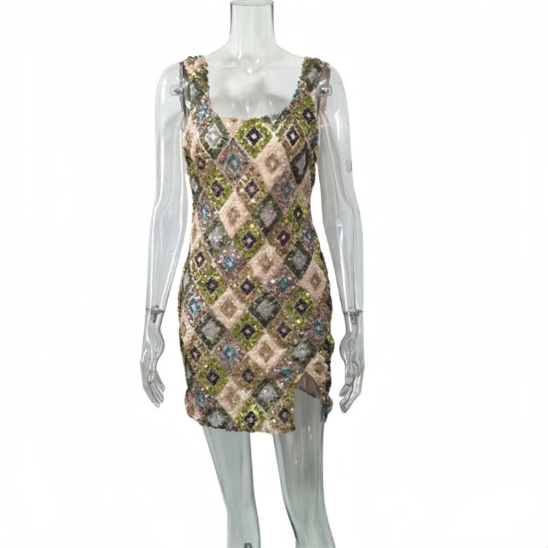 Turn heads with the Sassy and Strong Mini Dress, crafted from stretchy polyester and spandex for a bold, flattering fit. Its shimmering sequin decoration catches every light, making you the center of attention wherever you go. Perfect for those who dare to stand out and own the night.