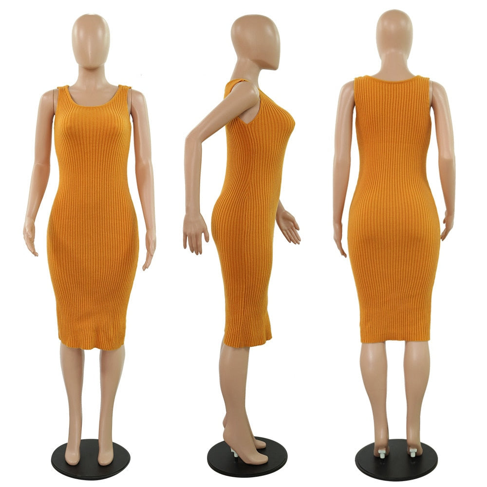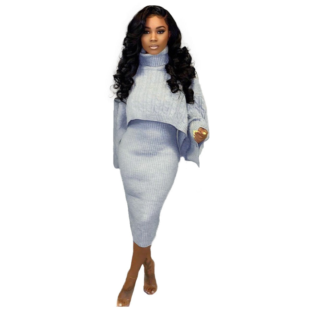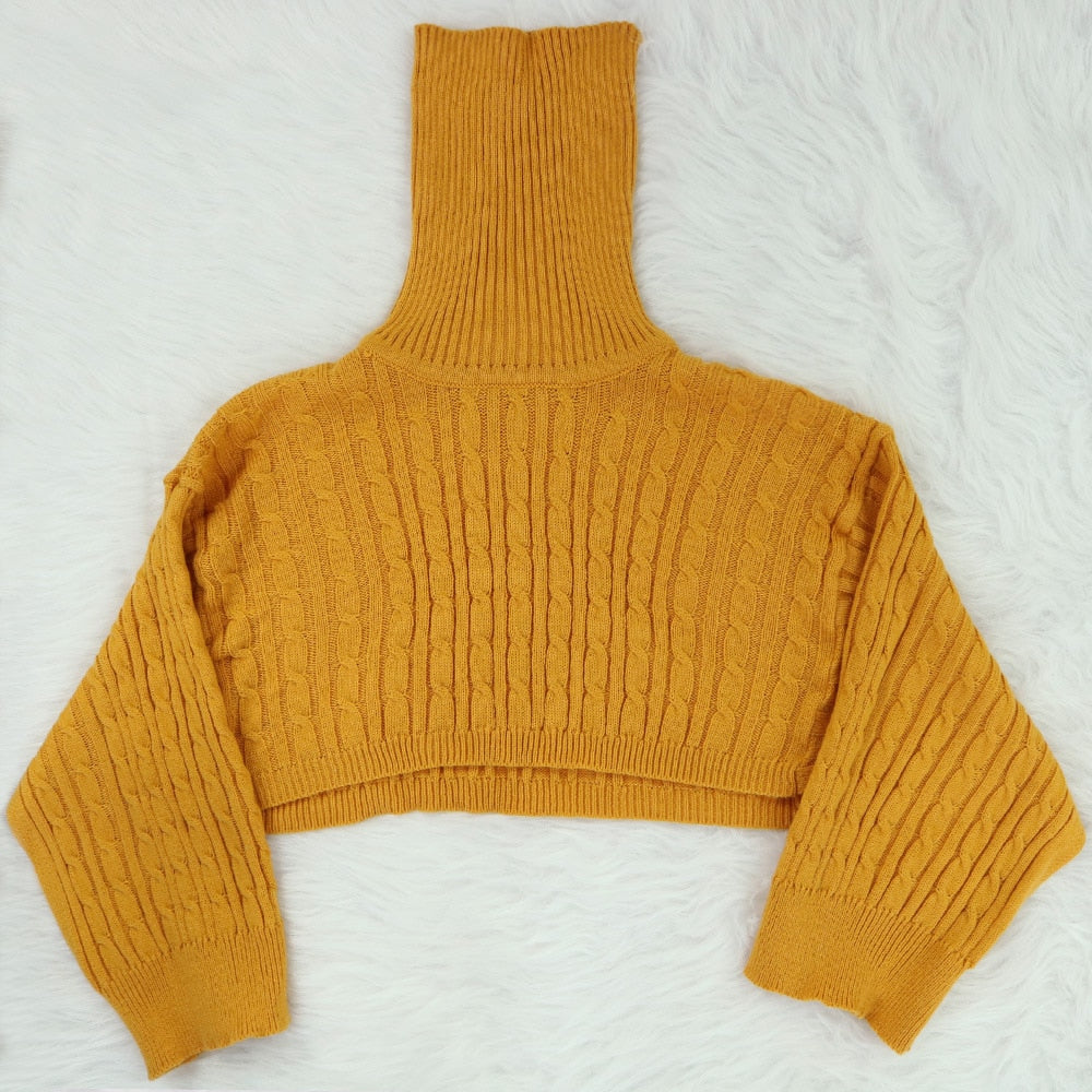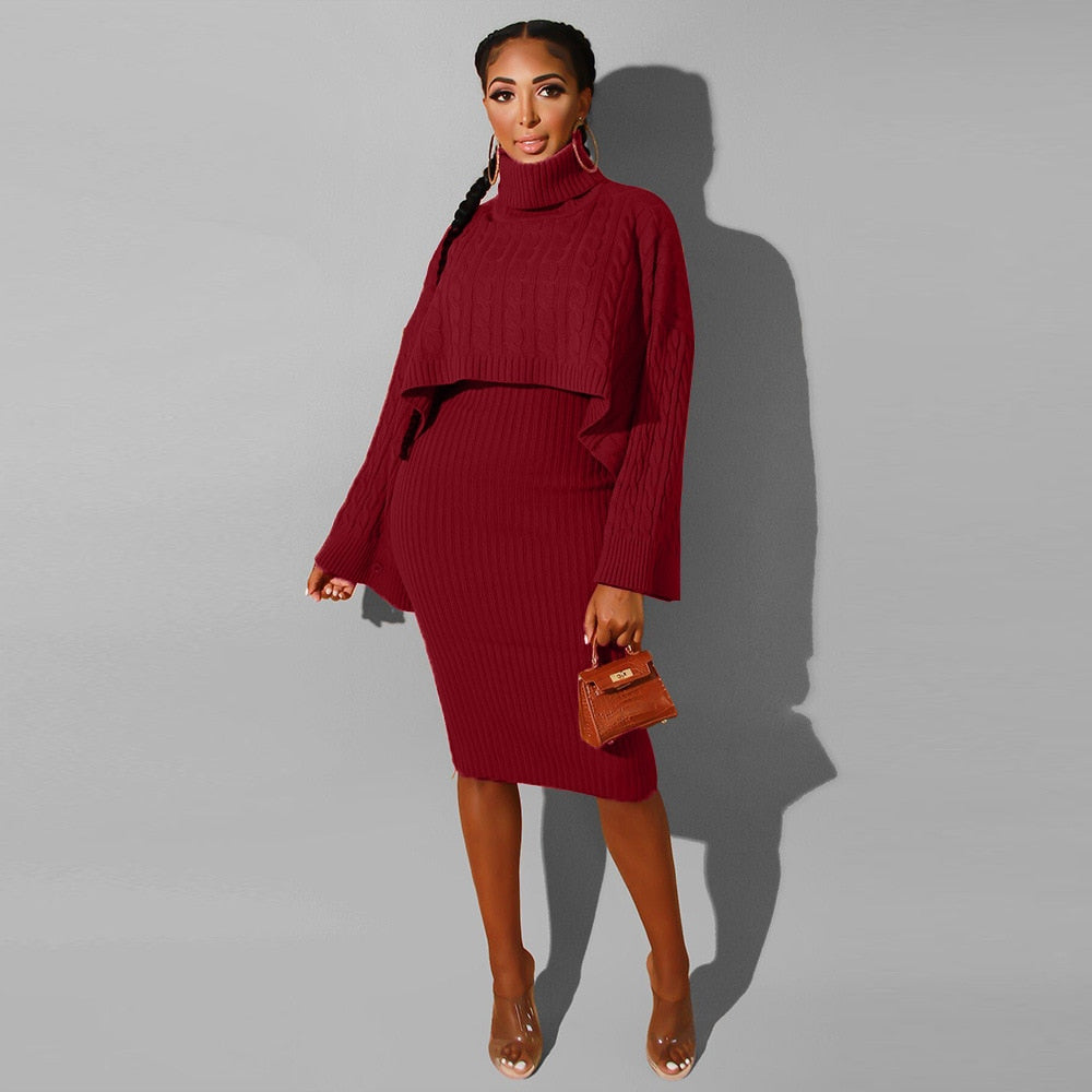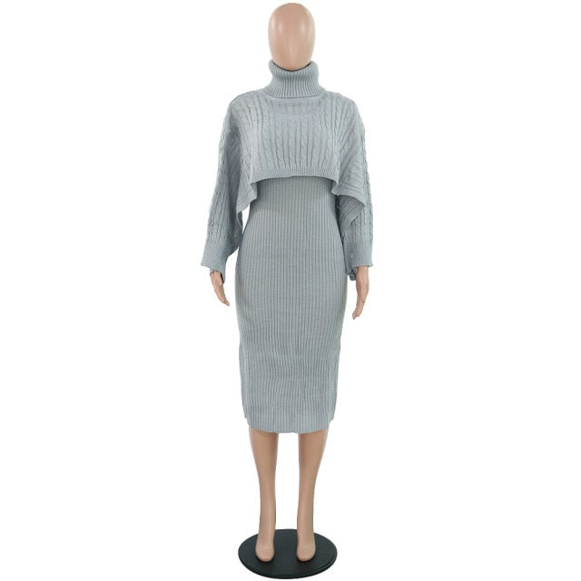 This midi dress is one set with a sweater so you can use it as an outer. The midi dress is sleeveless and has an o-neck collar. The sweater has a turtleneck collar, it's very warm and comfortable. The fabric is soft and breathable.
