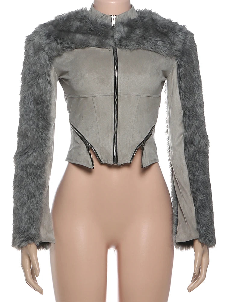 The Smooth Dusk Crop Jacket channels raw intensity with luxe fur accents that refuse to whisper. Constructed from premium polyester, this cropped silhouette delivers a clean, commanding presence while plush fur detailing adds an unexpected layer of sophistication and edge. Perfect for those moments when you need to look effortlessly dangerous—this jacket transforms any ensemble into a bold declaration. Wear it like you own the night.