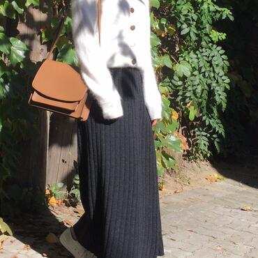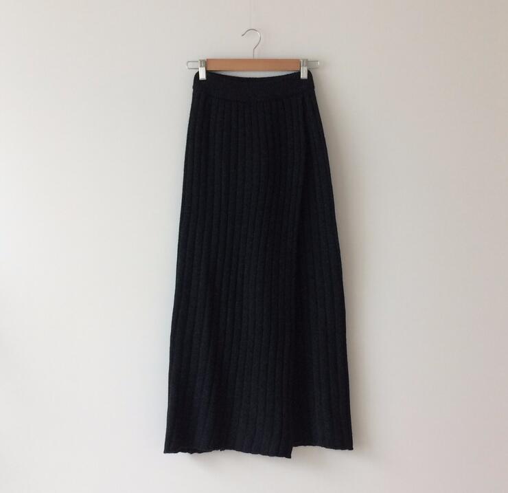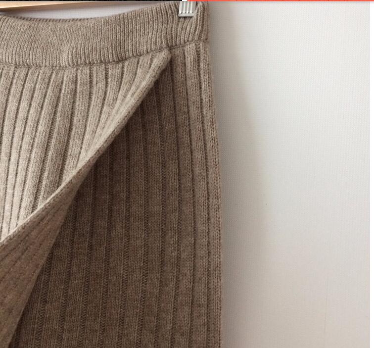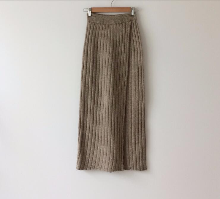 Subtle Stripe Pattern Knitted Pullover Maxi Skirt