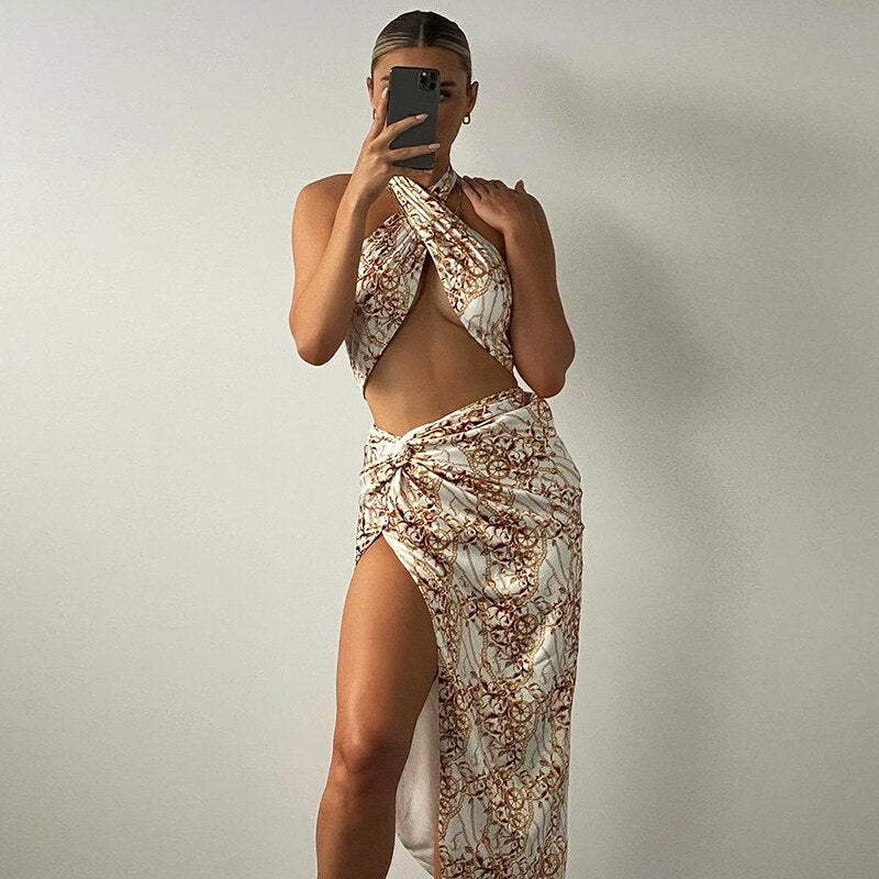 Classic Floral Pattern Asymmetric Skirt with Elastic Waist and Folds Decoration