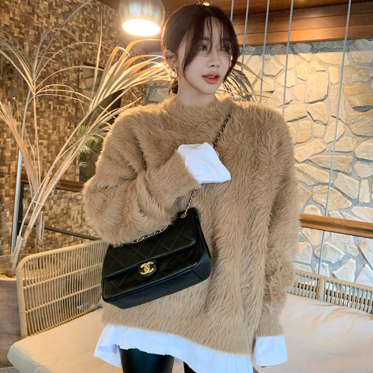 Solid Patterned Sweater With O-Neck Collar, Long Sleeve, And Acrylic Material