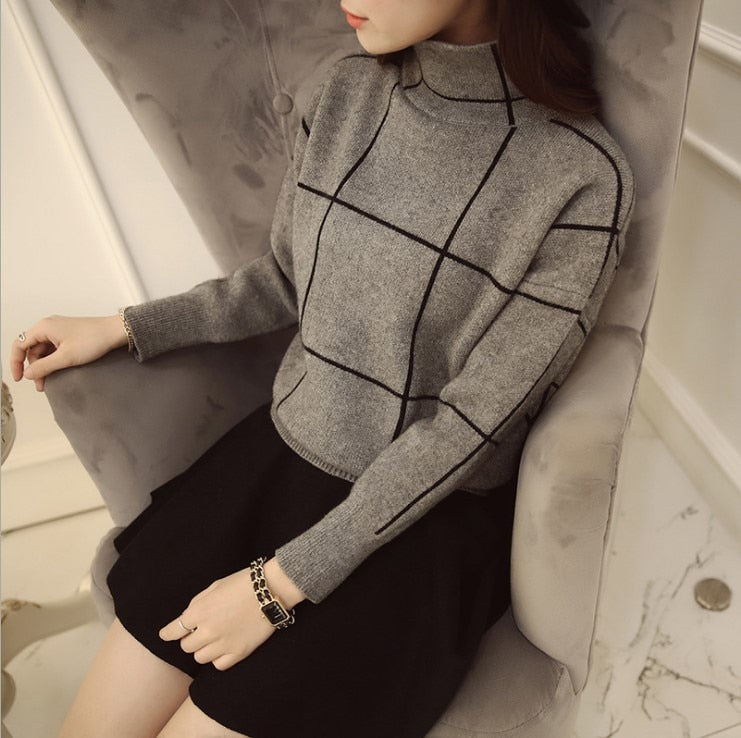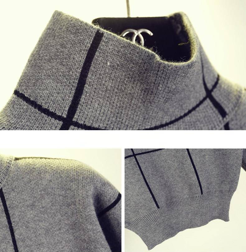 Plaid Patterned Sweater With Turtleneck Collar And Cotton Polyester Material