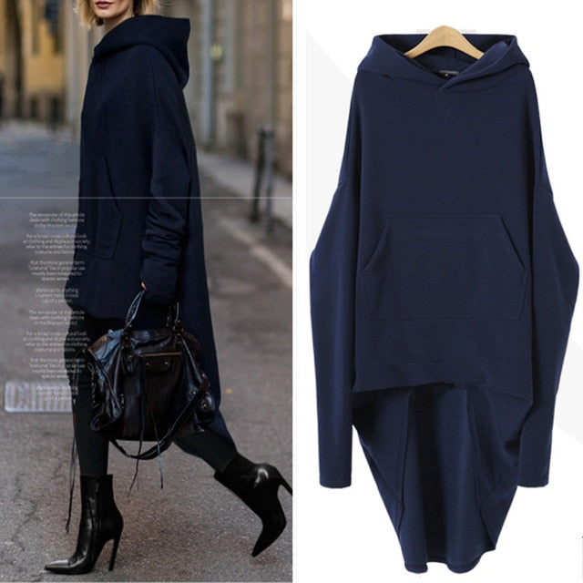 Batwing Sleeve Hooded Solid Sweater with Pocket and Cotton Polyester Material