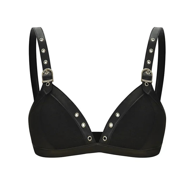 The Electric Temptation Bra Top fuses soft cotton, durable polyester, and edgy synthetic leather for a fearless look. Its bold design enhances your shape while delivering unmatched comfort and attitude, perfect for standing out with confidence.