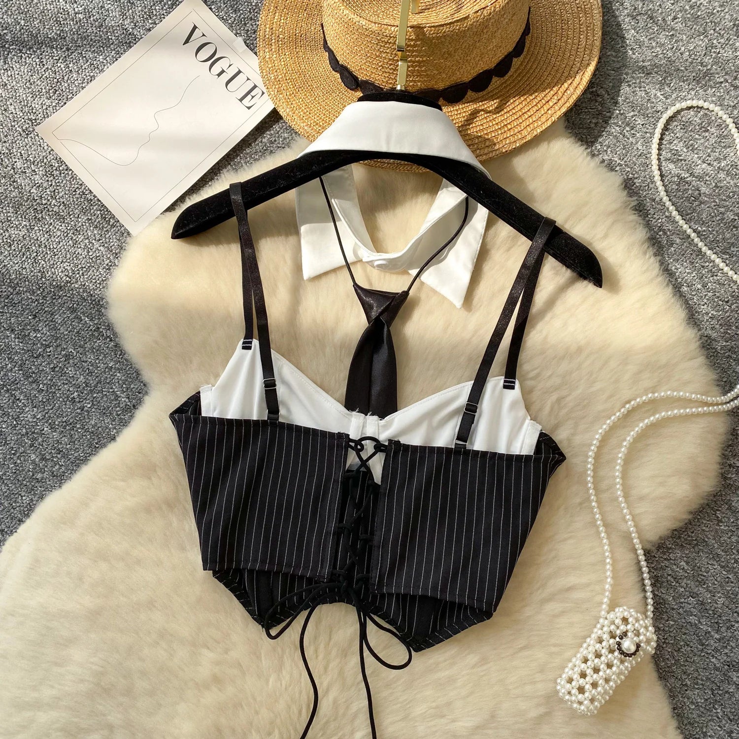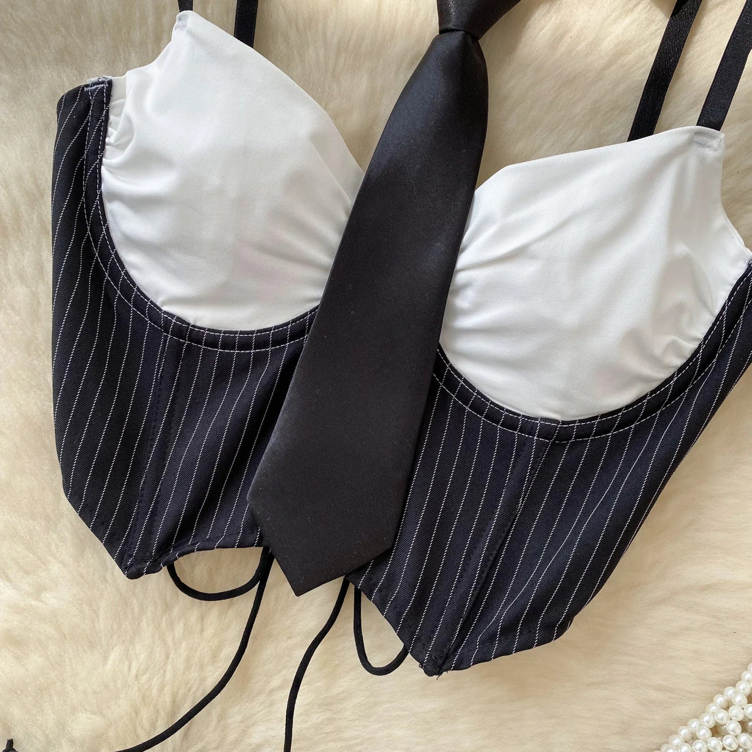 Own the room in this audacious striped crop top that blends edge with sophistication. Woven from a luxurious polyester and viscose blend, this piece offers a fluid drape that moves with your confidence. Bold stripes create dynamic visual interest while the cropped silhouette showcases your fearless style.