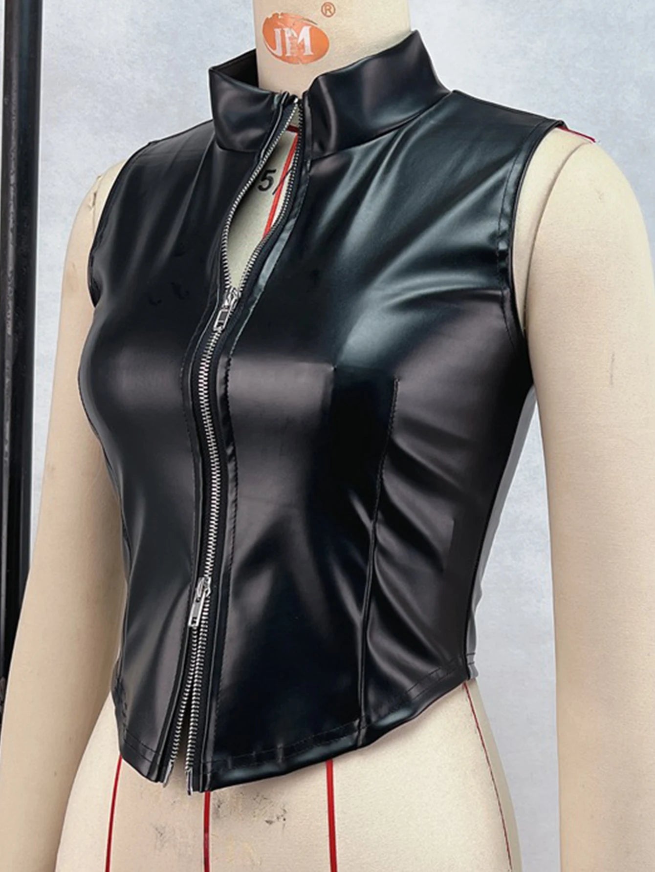 Unleash your rebellious side in our Rollin' Side By Side Crop Top. This edgy PU piece features a sleek zipper detail and solid construction that hugs your curves in all the right places. Designed for those who dare to stand out, this crop top makes no apologies for turning heads and breaking hearts.