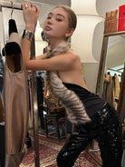 The Smoky Lull Tank Tops redefine bare-back glamour with fearless design. Crafted from a responsive polyester and elastane blend, this piece hugs your curves while the strategic backless cut exposes what you're proud to show. Luxe fur detailing adds an unexpected edge—transforming a simple tank into a statement piece that screams confidence.