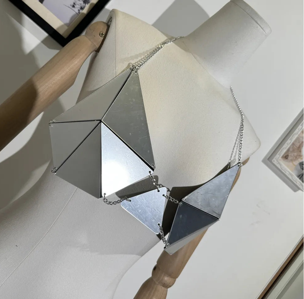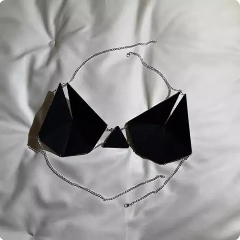 The Spiked Halo Bra Top fuses sleek polyester with bold metal accents to create an unforgettable body jewelry piece. Its striking solid design and edgy spikes demand attention, perfect for those who dare to lead with fierce confidence.