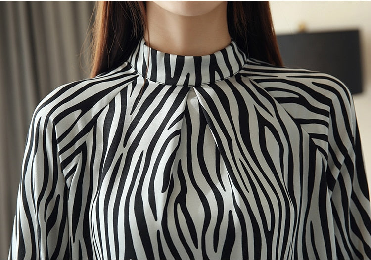 Chiffon Polyester Acetate Acrylic Striped Pattern Full Sleeve Blouse