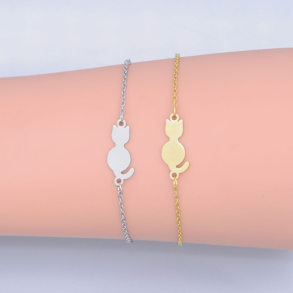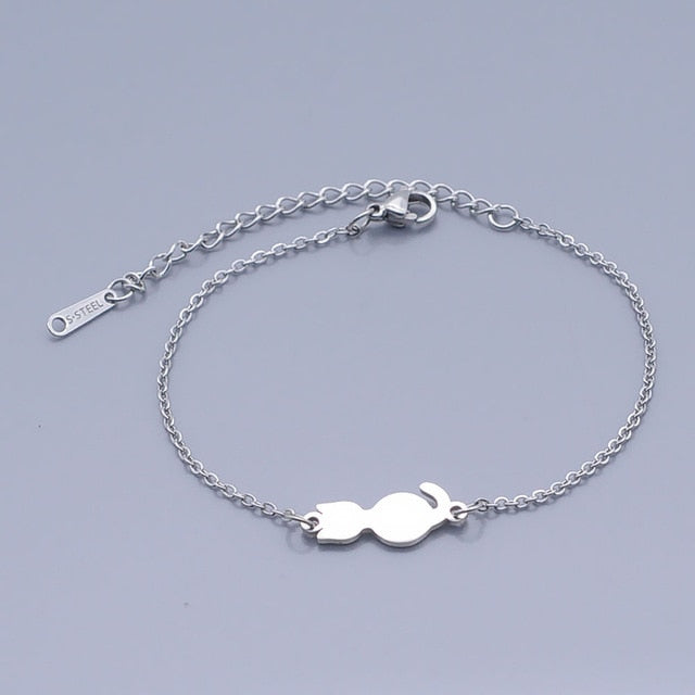 100% Stainless Steel Dainty Kitty Cat Charm Bracelet