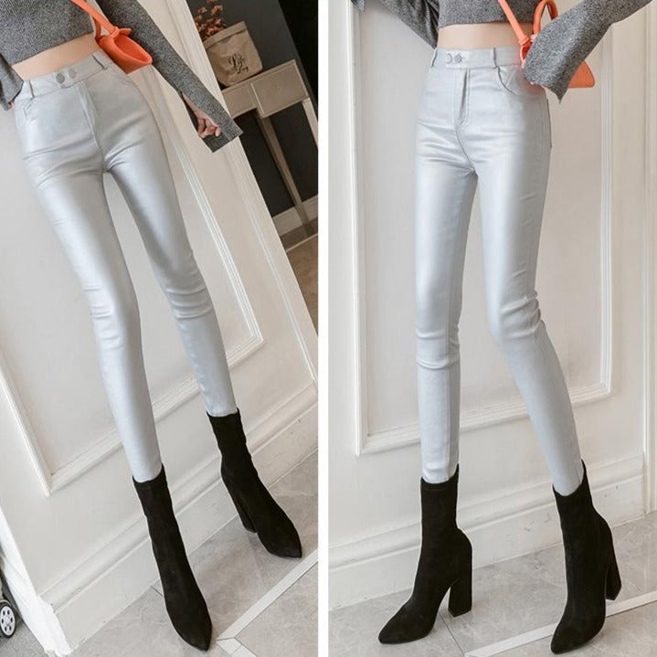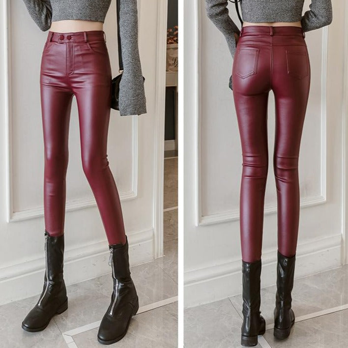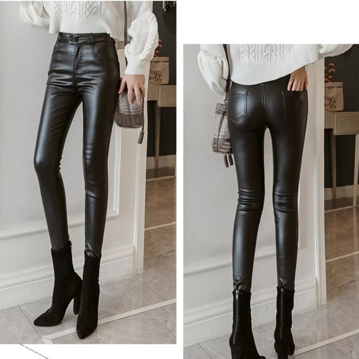 Middle-Waisted Faux Leather Pants with Pocket and Zipper Closure