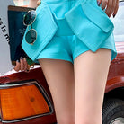 High-Waisted Cotton Shorts with Asymmetric Pocket Decoration
