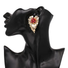 Big Leaf Push Back Earrings With Zinc Alloy Material And Rhinestone Decoration