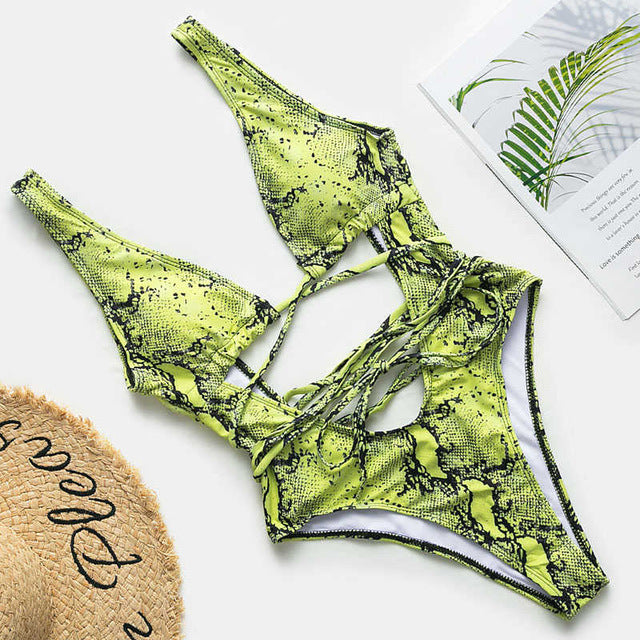 Brazilian Leopard Printed Women Pushup One Piece Monokini