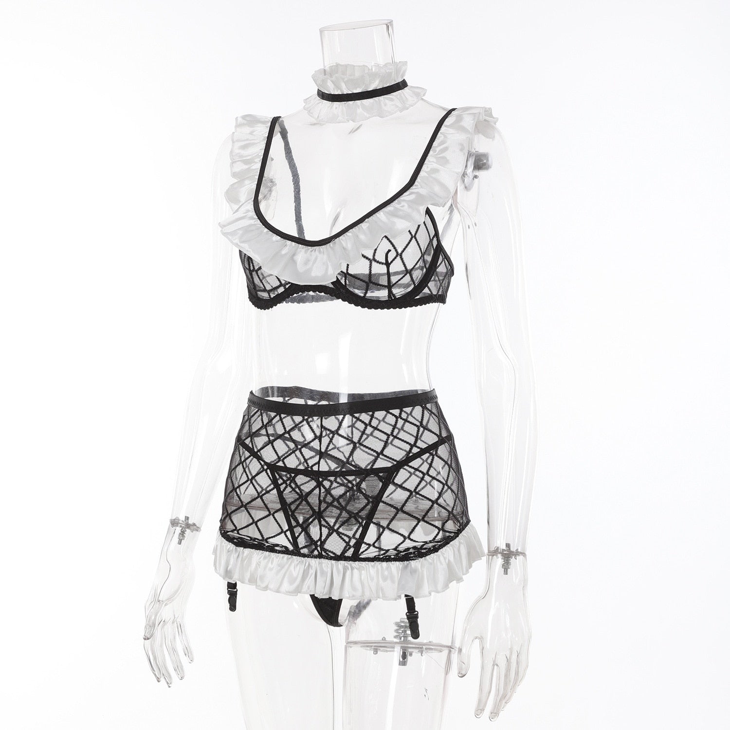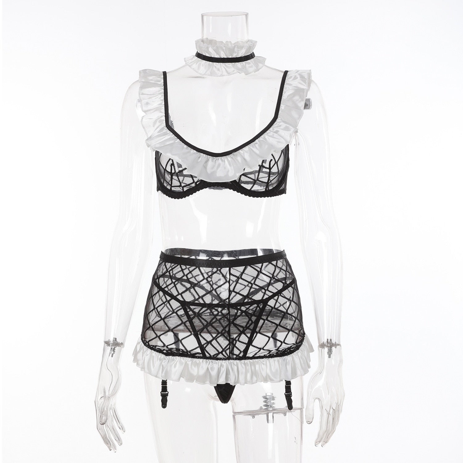 Look no further than this lingerie set for a classic nod to style. Crafted from plaid linen and adorned with delicate ruffles, you will feel as comfortable as you are elegant. Perfect for an everyday look with an edge.