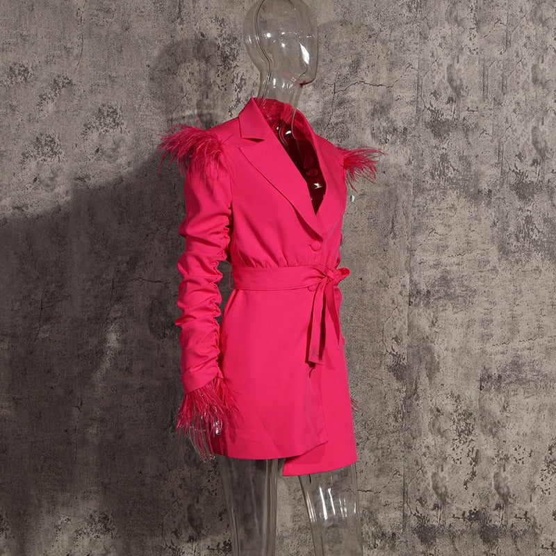 Solid Pattern Coat With Sashes Decoration, Notched Lapel Collar, And Cotton Polyester Material