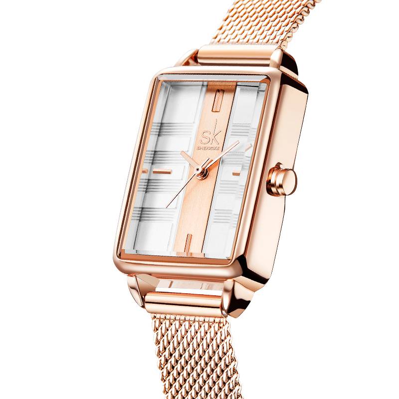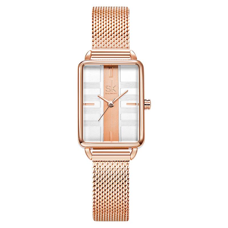 Classy Minimalist Stripe Style Stainless Steel Rectangular Watch with Stainless Steel Strap and Quartz Movement