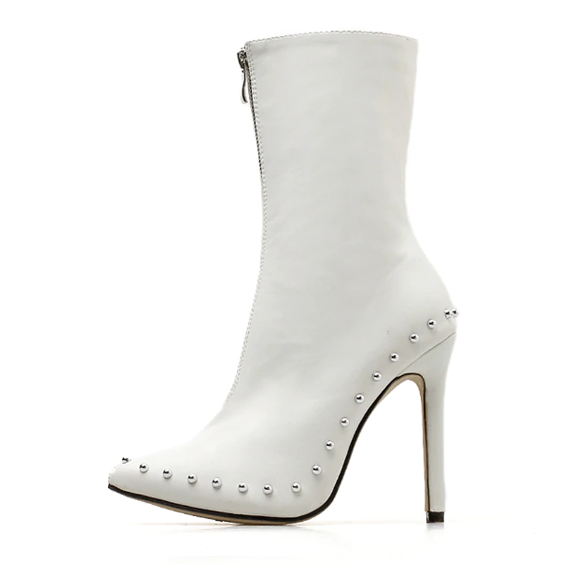 Casual Metal Decoration Rivet Thin Heels Pointed Toe Women Ankle Boots