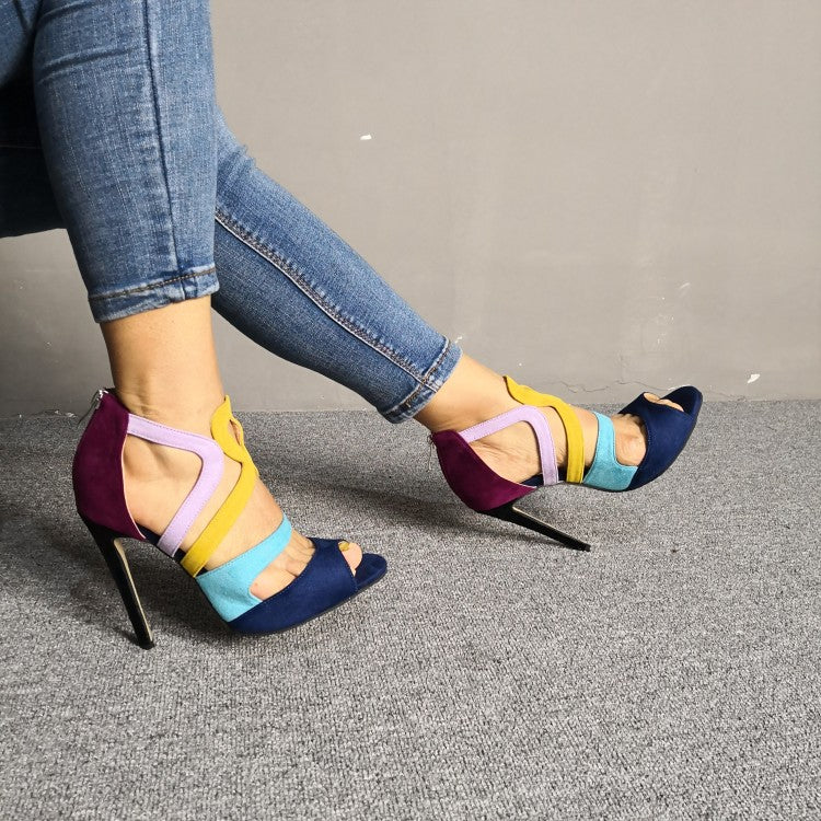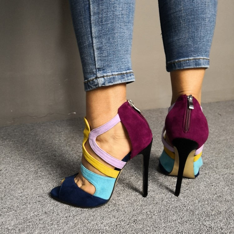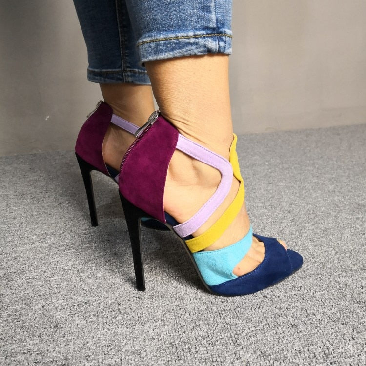 Flock Colorful Beautiful Peep Toe Ankle Heels
