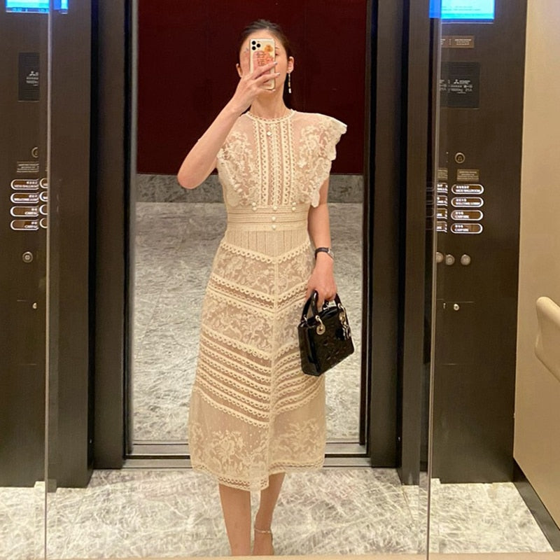 A chic, feminine and fashion forward design that is guaranteed to make a statement. This midi length dress is perfect for casual or formal occasions. The flowing design completes the look with a flattering puff sleeve detail. Made from a breathable fabric, this dress is perfect for summer days. The fashionable lace adds a touch of elegance that is sure to get noticed.