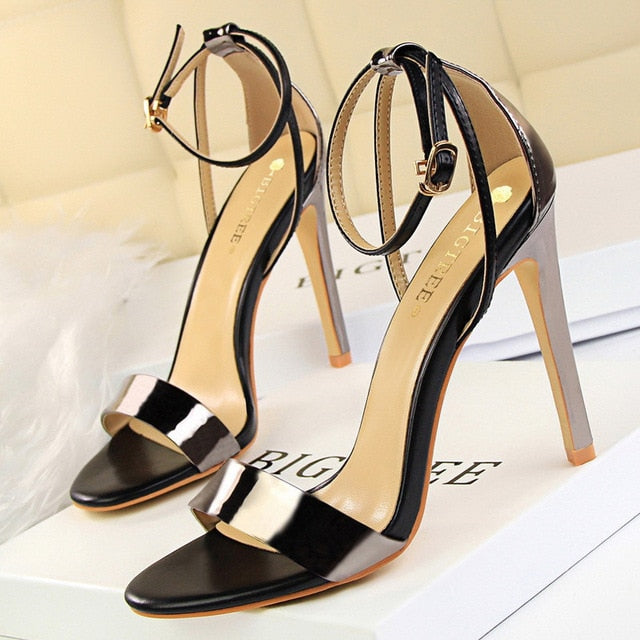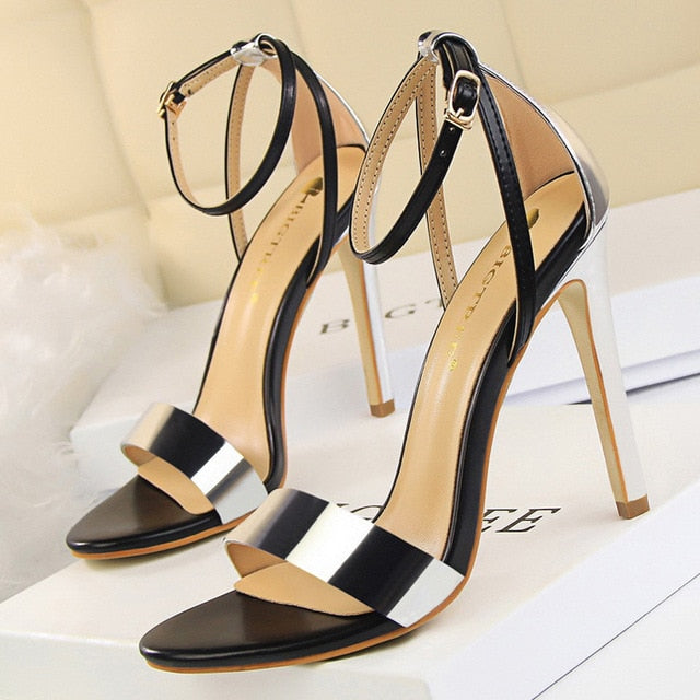 Ankle Buckle Strap Heeled Sandals with Peep Toe and PU Material