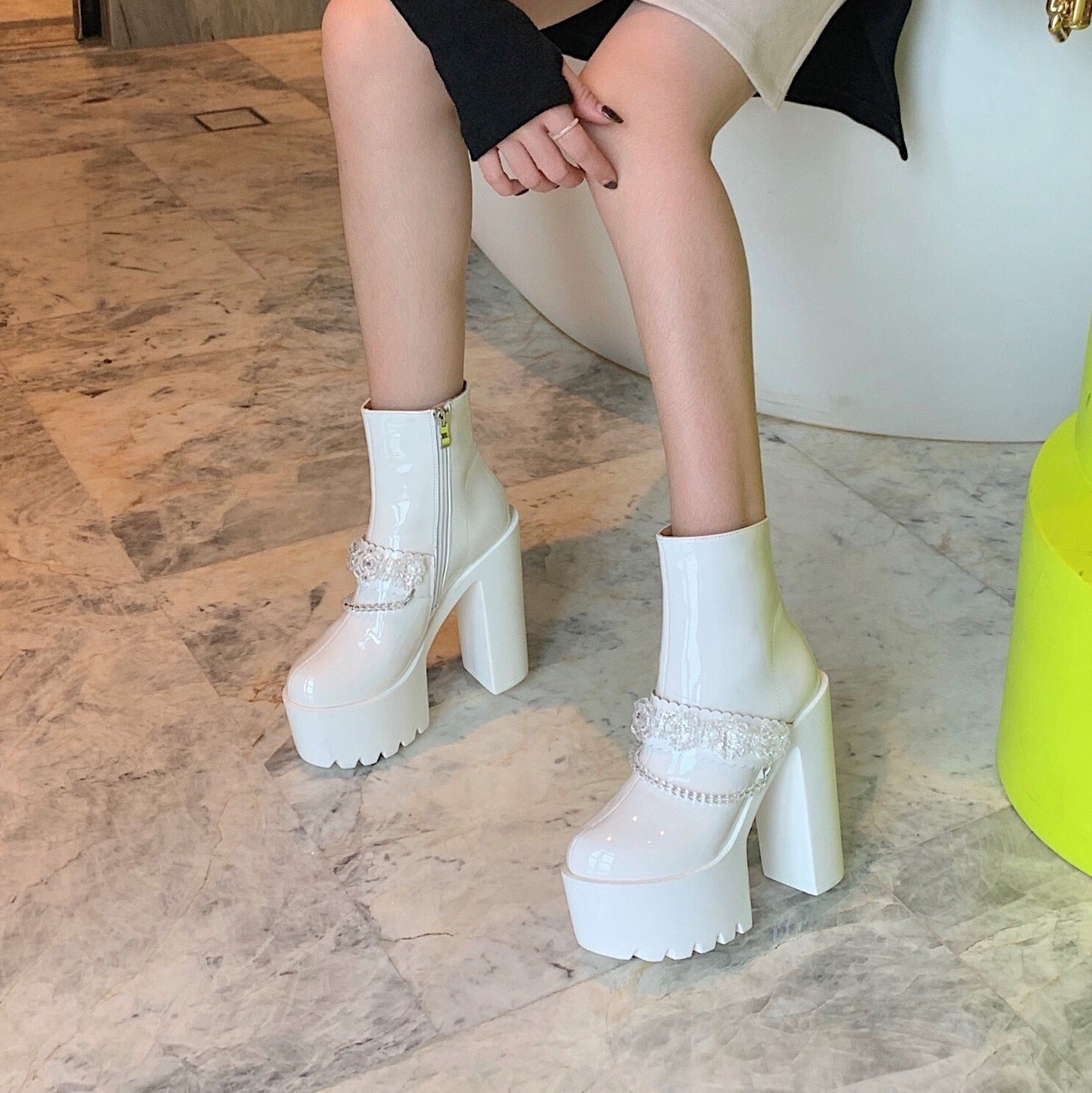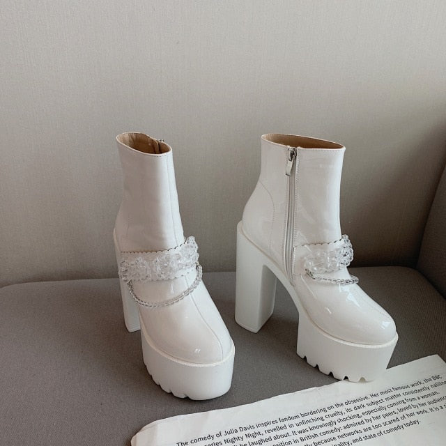 If you want to rock your look, this pair of heeled boots are the perfect finishing touch. The stylish platform and bead detailing upper line the fashion-forward nature of the boot. Designed with a simple round toe and a square heel, this versatile style is also available in black and white colors.