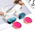 Irregular Stone And Pink Round Rhinestone Drop Dangle Earrings With Zinc Alloy Material
