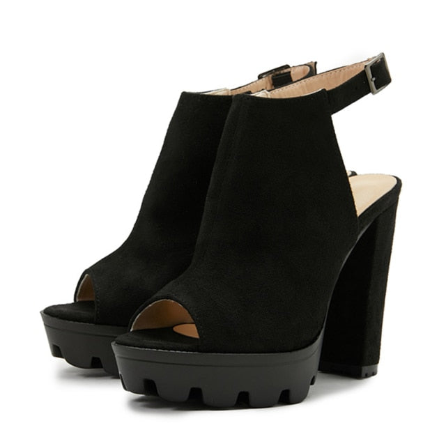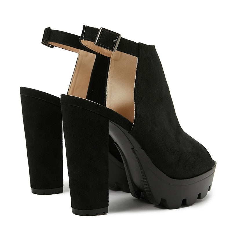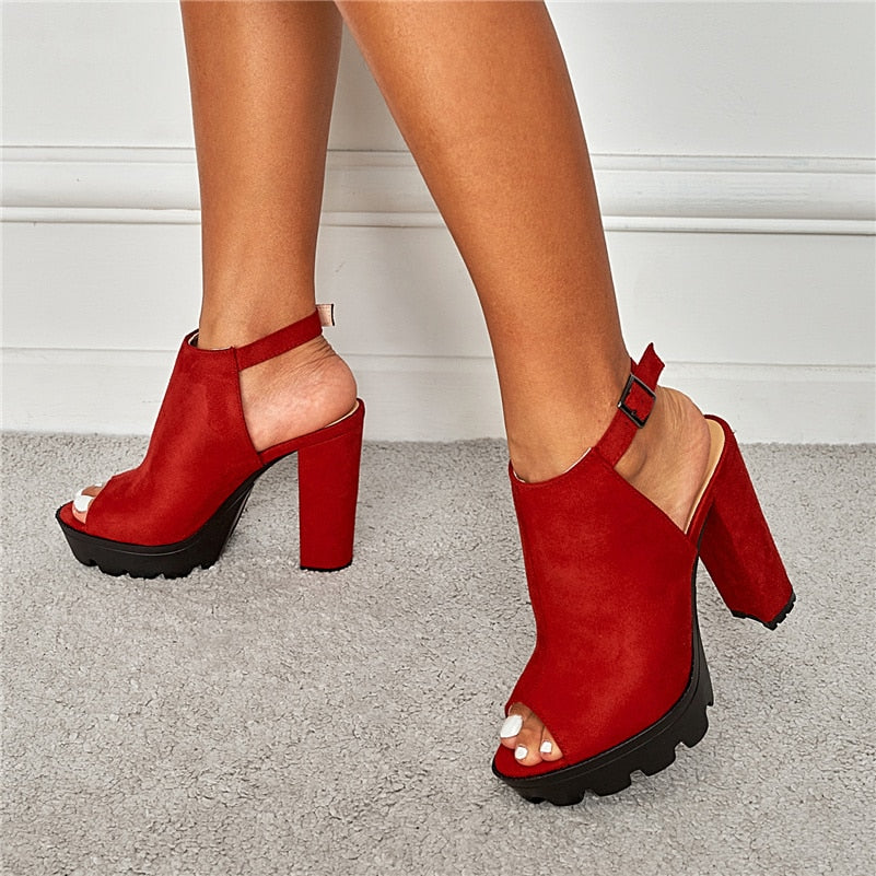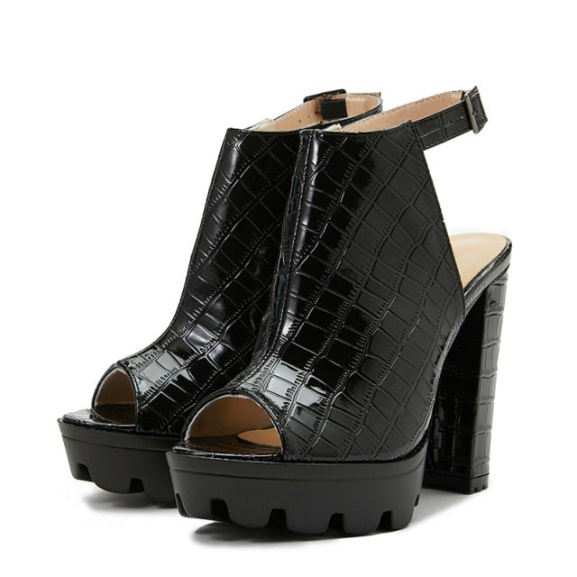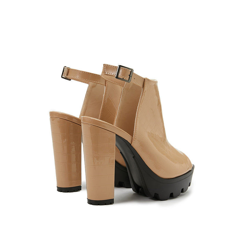 Add these stylish sandals to your cart. The open-toe and back with closed upper styles are perfect for a casual party. The solid and basic colors make it easy to match any outfit. It is also available in glossy leather variants decorated with crocodile skin patterns. The ankle strap will ensure a secure fit. The short platform and chunky heels give extra height without being too uncomfortable for long wear.