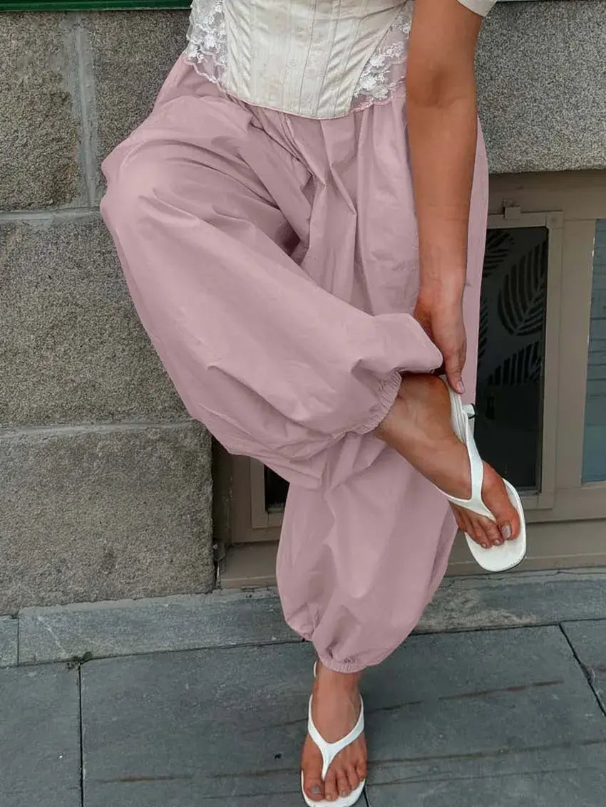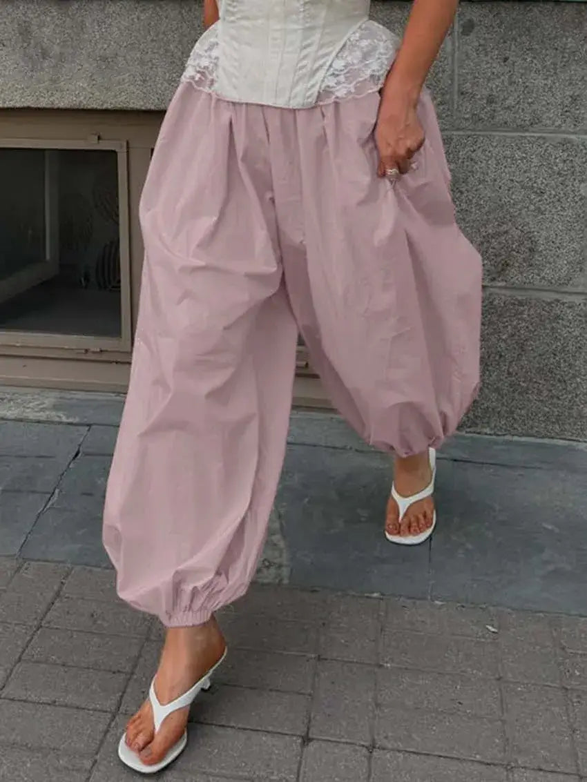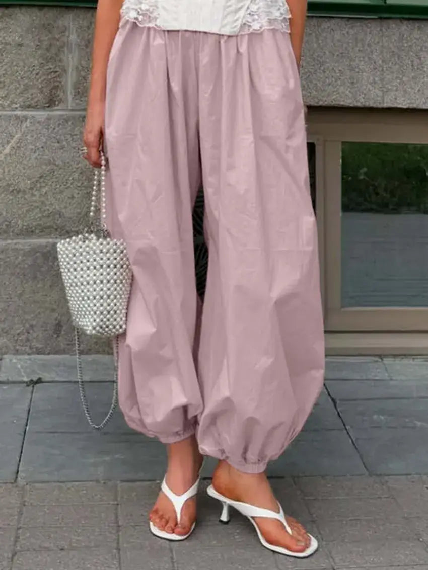 Elastic Cuff Wide-Leg Lantern Pants