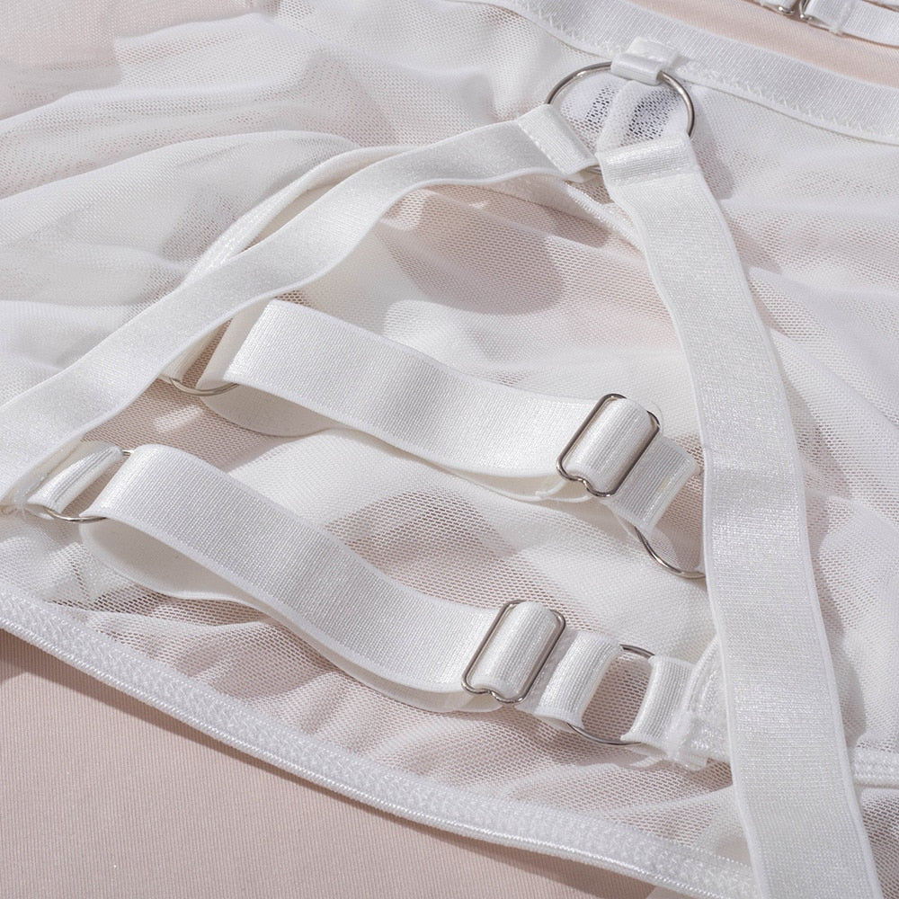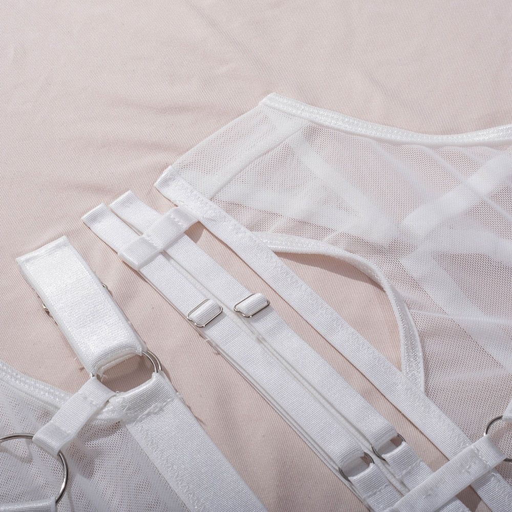 This sexy and stylish set is a great way to add a little something extra to your lingerie. The two pieces are crafted from a comfortable and breathable linen blend material. This set has a classic design that is sure to become a staple in your lingerie collection. The classic white color is a versatile choice that looks good with any outfit.