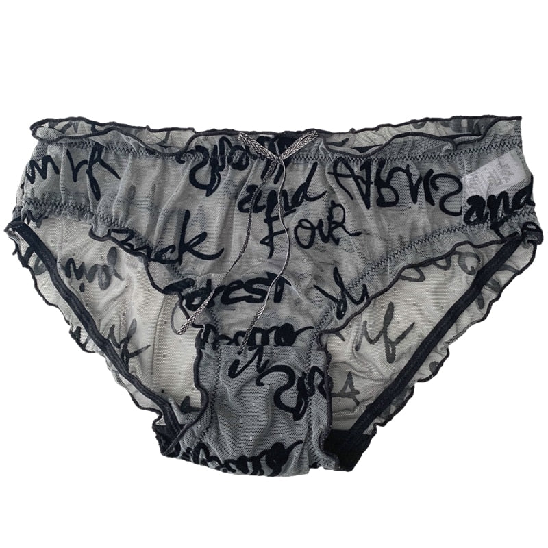 Letter Printed Mesh Briefs with Ruffle Decoration and Nylon Material