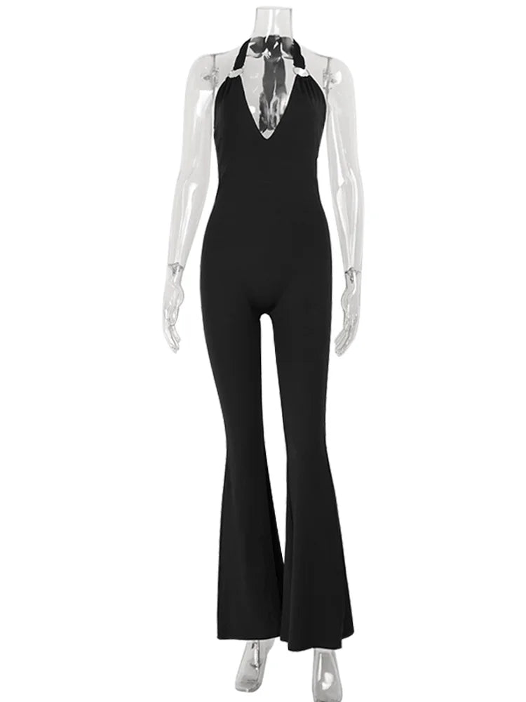 Femme Power Jumpsuit Own your power in this striking black jumpsuit that strips away pretense with its daring backless design. The flowing flare pants create dramatic movement with every step, while the open back reveals confidence and allure. Sleek, sophisticated, and unapologetically bold, this piece is engineered for those who refuse to play it safe. Perfect for making an unforgettable entrance at any event where you're ready to command attention and celebrate your strength.