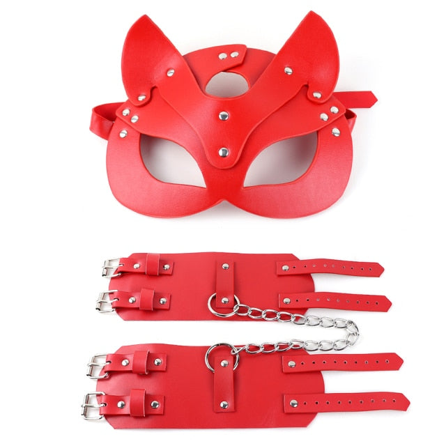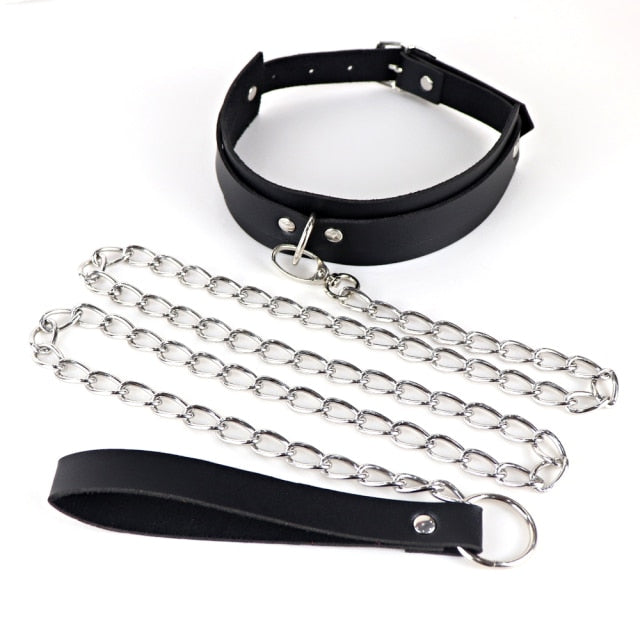 The "Find Me In The Dark Lingerie" is available in choker, handcuff, and body harness. They are made of synthetic leather material.